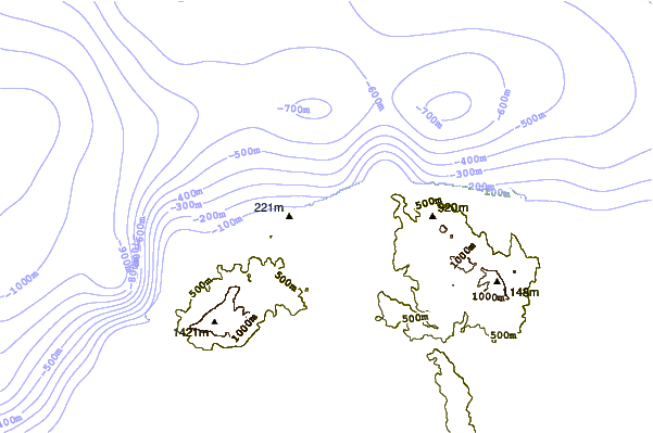 Use this relief map to navigate to tide stations, surf breaks and cities that are in the area of Neon Karlovasion.