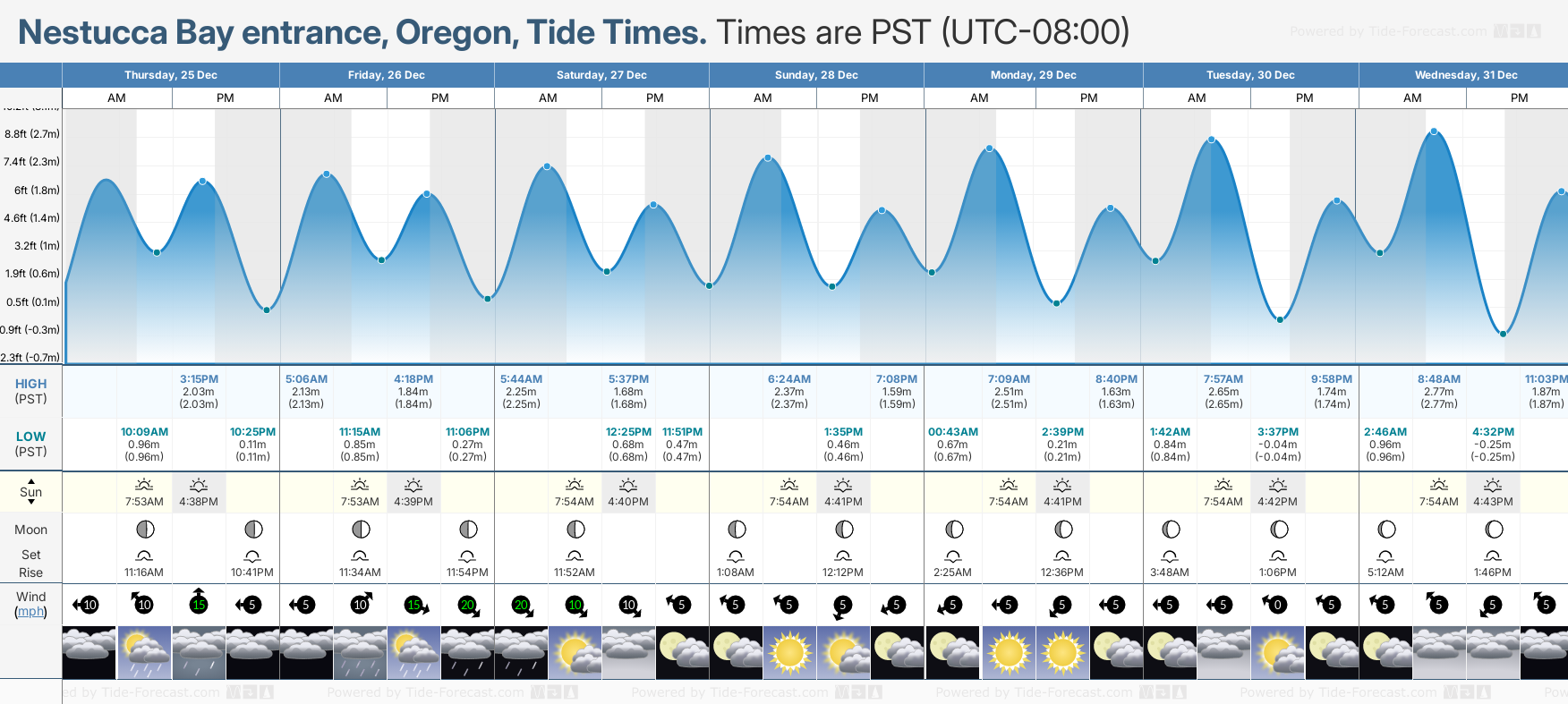 Tide Times for Nestucca Bay entrance: Wednesday 31 December 2025