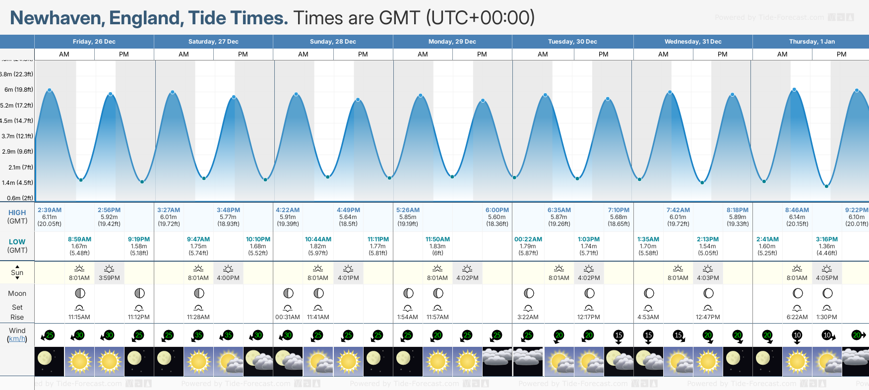 Tide Times for Newhaven (tomorrow): Friday 26 December 2025