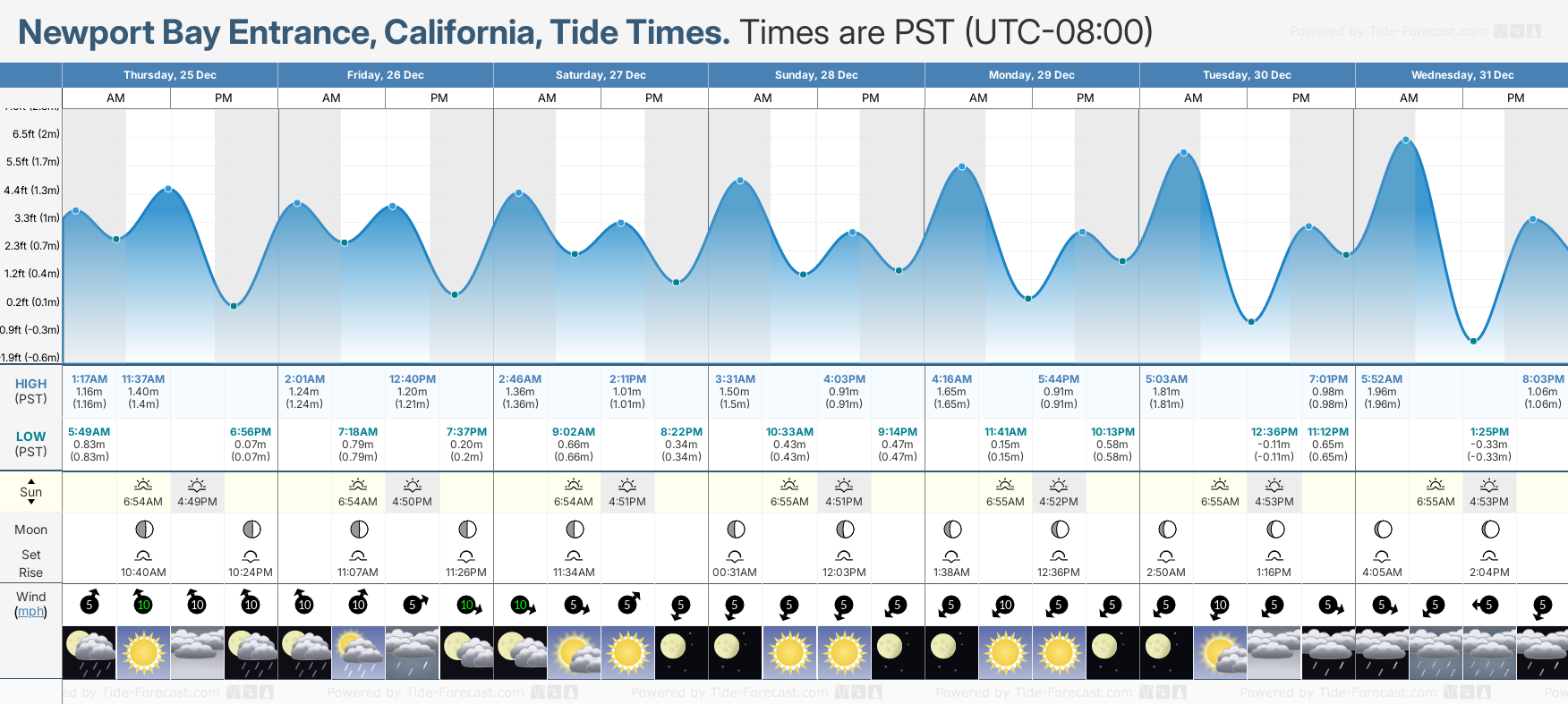 NOTE: Use of this site for Newport Bay Entrance, California tide times is subject to our terms.