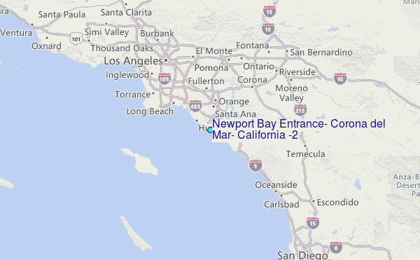 Use this relief map to navigate to tide stations, surf breaks and cities that are in the area of Newport Bay Entrance, Corona del Mar, California (2).