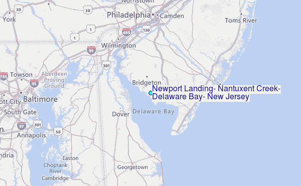 Use this relief map to navigate to tide stations, surf breaks and cities that are in the area of Newport Landing, Nantuxent Creek, Delaware Bay, New Jersey.