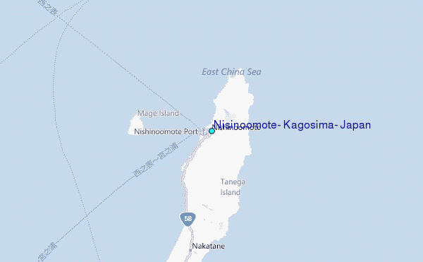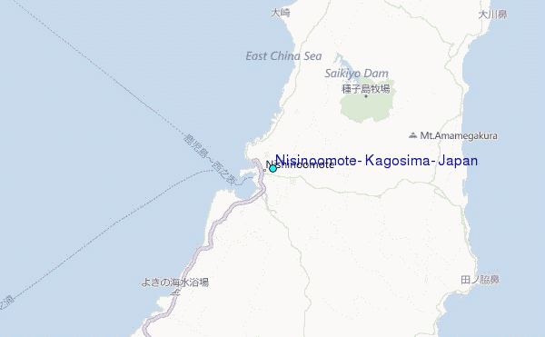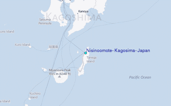 Use this relief map to navigate to tide stations, surf breaks and cities that are in the area of Nisinoomote, Kagosima, Japan.