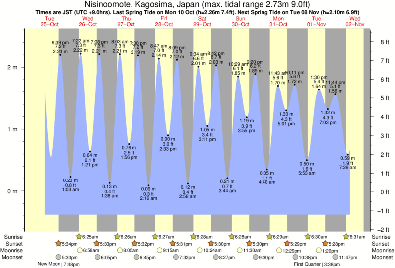 Today's tide times for Nisinoomote, Kagosima, Japan