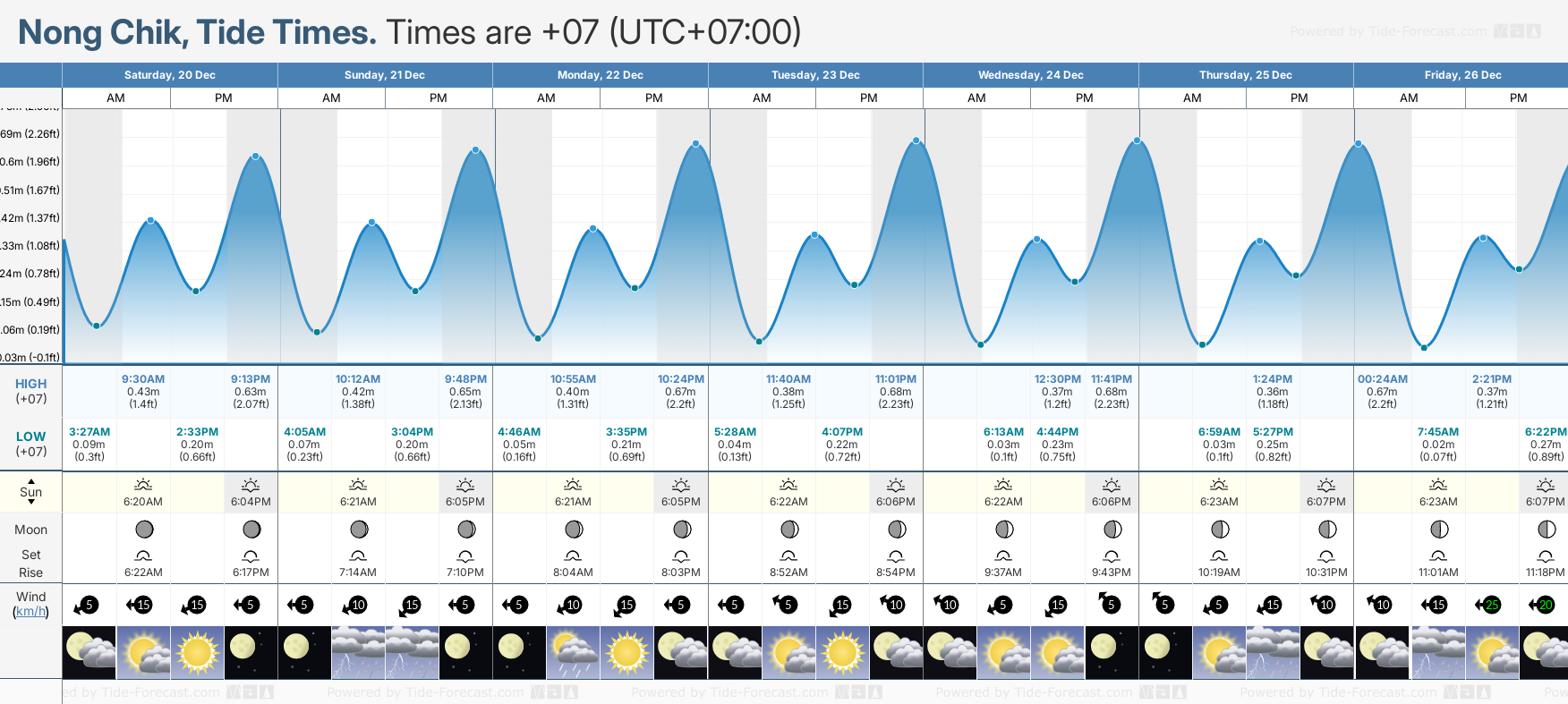 Tide chart for Nong ChikShowing low and high tide times for the next 30 days at Nong Chik. Tide Times are +07 (UTC +7.0hrs).
