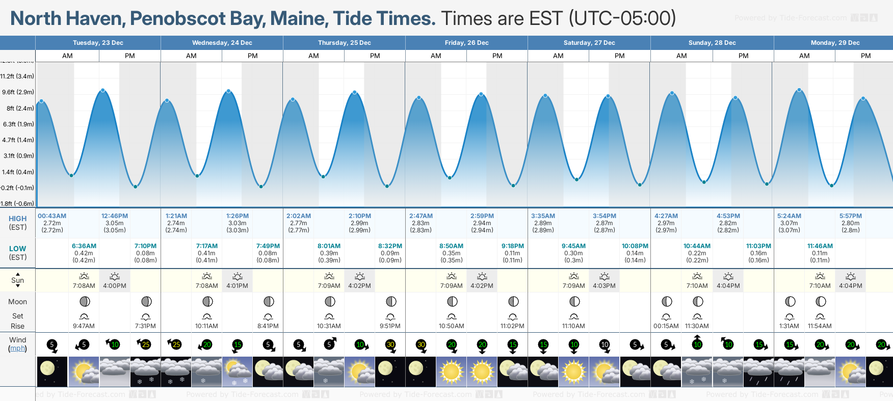 Tide Times for North Haven, Penobscot Bay (tomorrow): Tuesday 23 December 2025