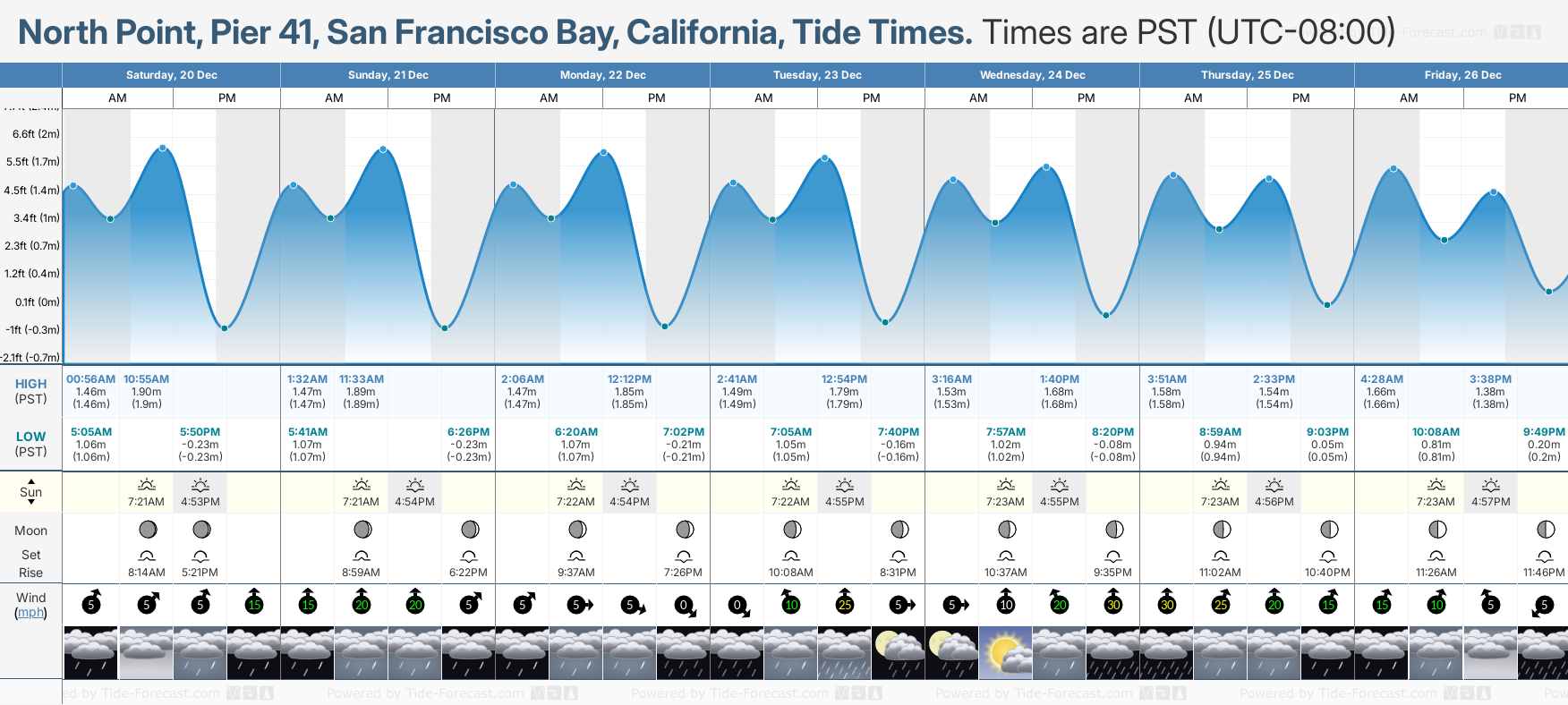 Today's tide times for North Point, Pier 41, San Francisco Bay: Saturday 20 December 2025