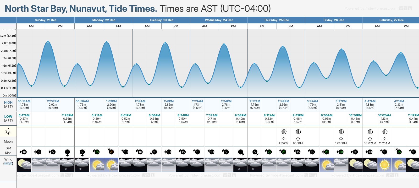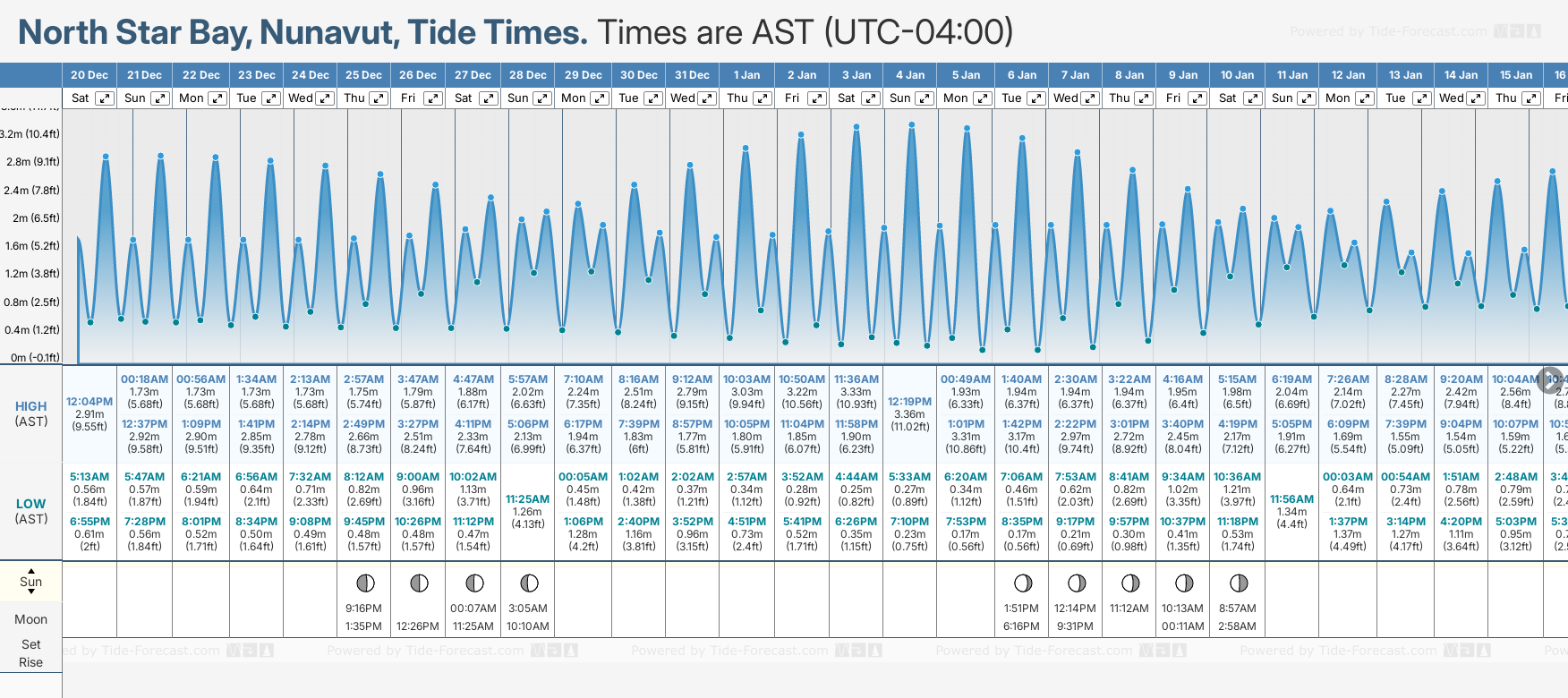 December and January Tide charts for North Star Bay: The tide charts below show the height, time and date of high and low tides for the next 30 days.