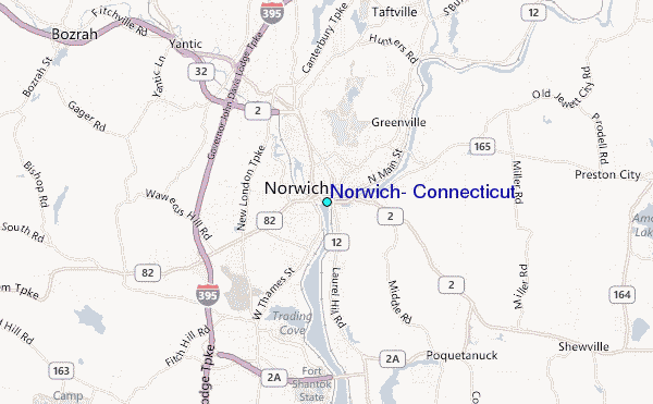 Use this relief map to navigate to tide stations, surf breaks and cities that are in the area of Norwich, Connecticut.