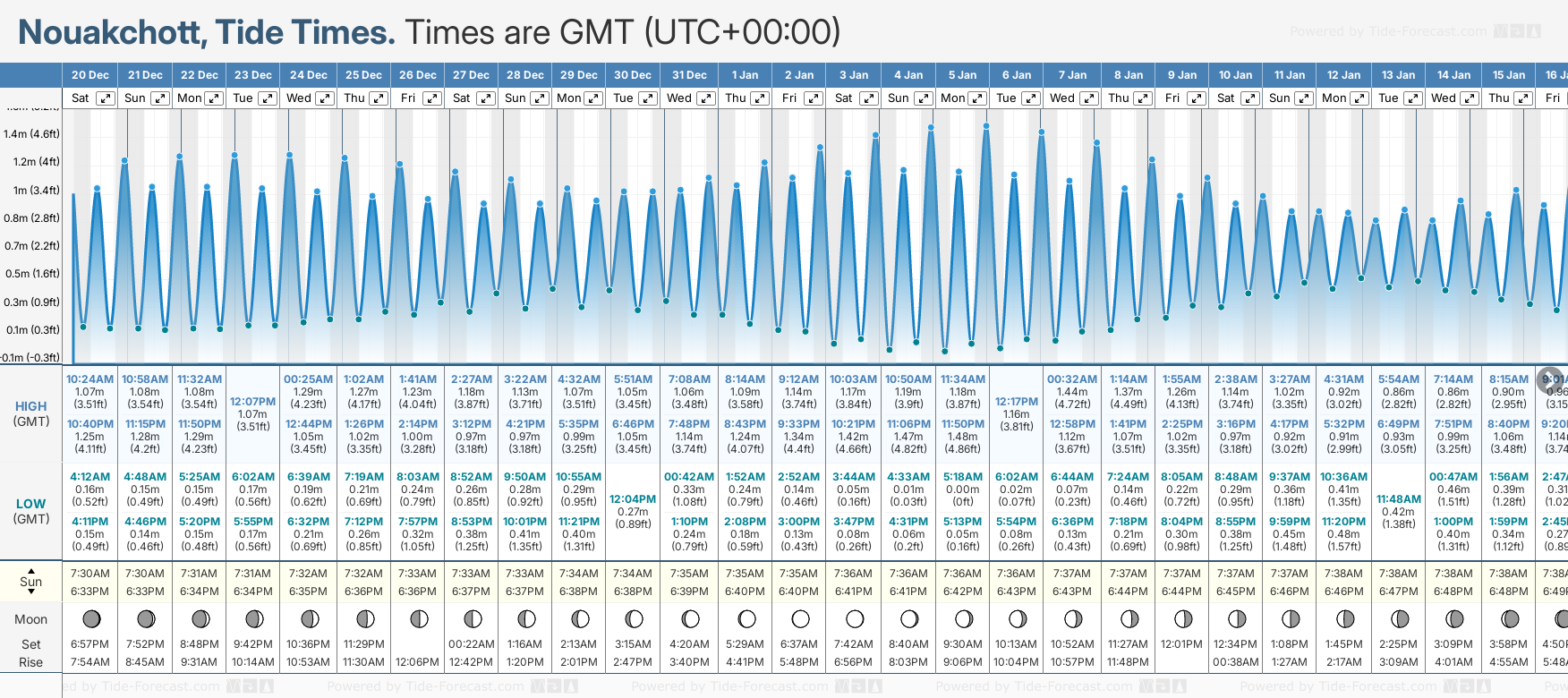 Tide Times for Nouakchott (tomorrow): Sunday 21 December 2025
