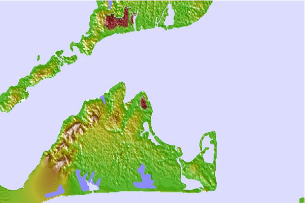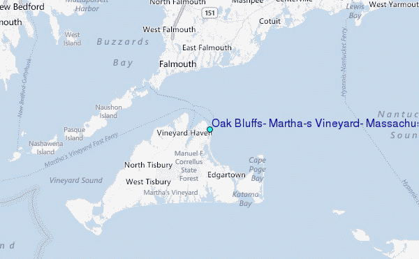 Use this relief map to navigate to tide stations, surf breaks and cities that are in the area of Oak Bluffs, Martha's Vineyard, Massachusetts.