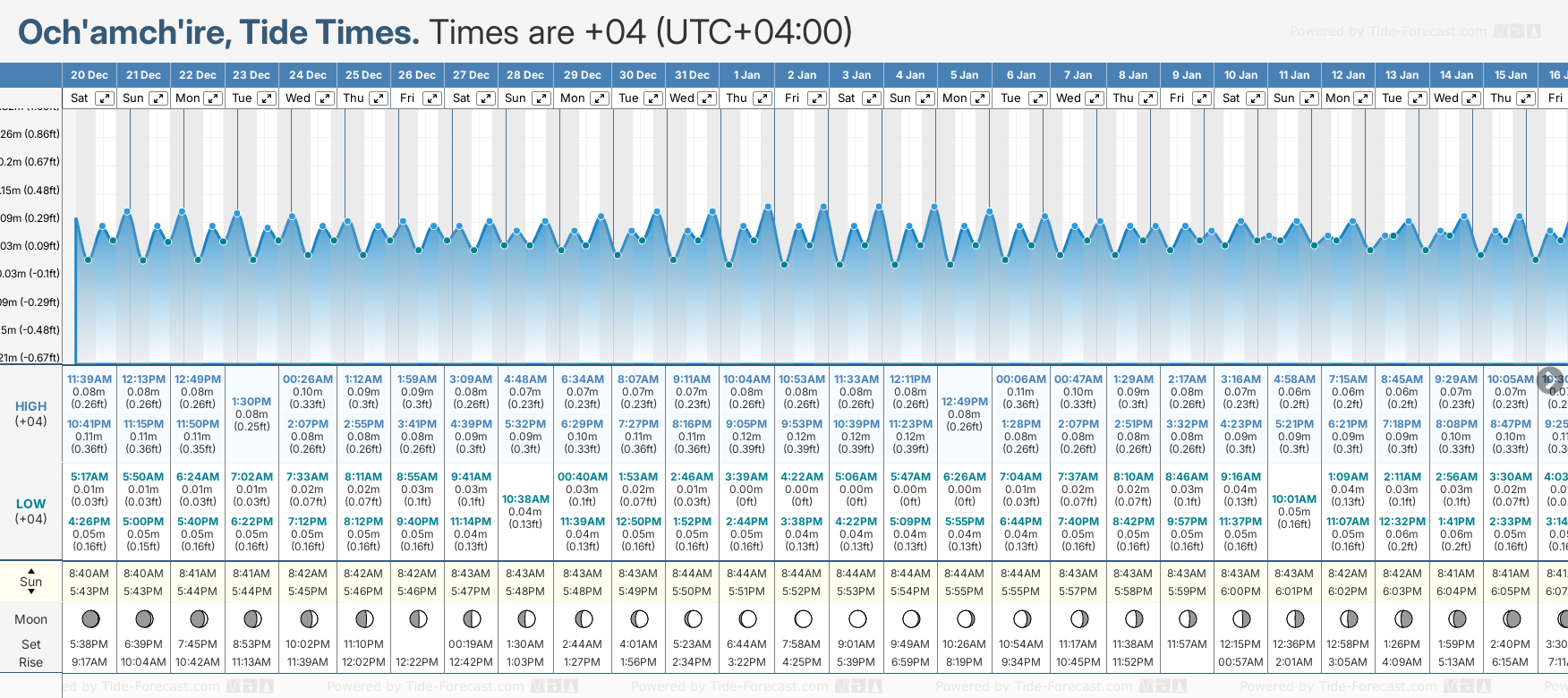 Tide Times for Och'amch'ire: Thursday 25 December 2025