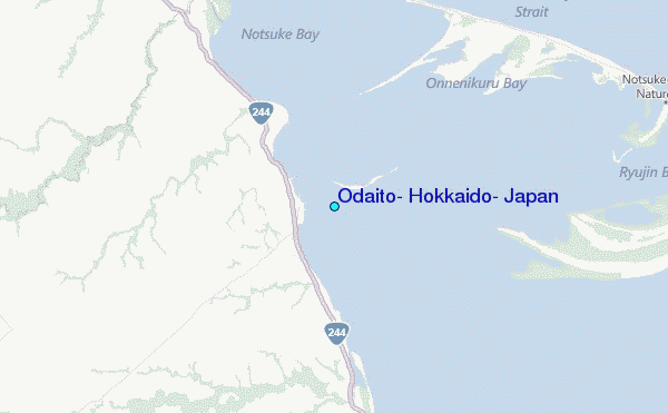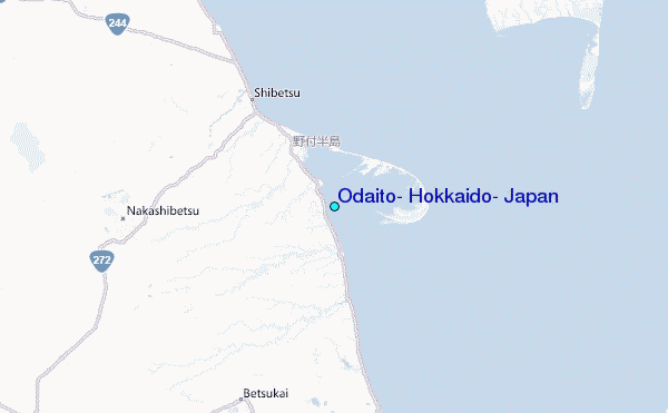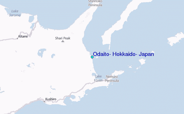 Use this relief map to navigate to tide stations, surf breaks and cities that are in the area of Odaito, Hokkaido, Japan.