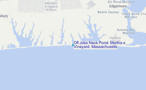 Use this relief map to navigate to tide stations, surf breaks and cities that are in the area of Off Jobs Neck Pond, Martha's Vineyard, Massachusetts.