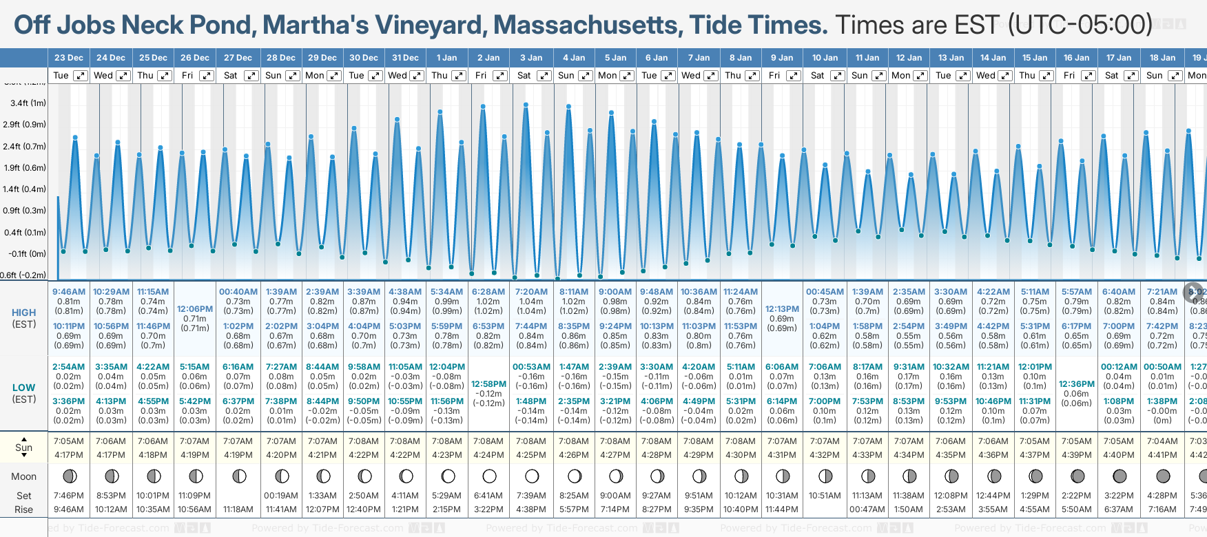 Tide Times for Off Jobs Neck Pond, Martha's Vineyard (tomorrow): Tuesday 23 December 2025