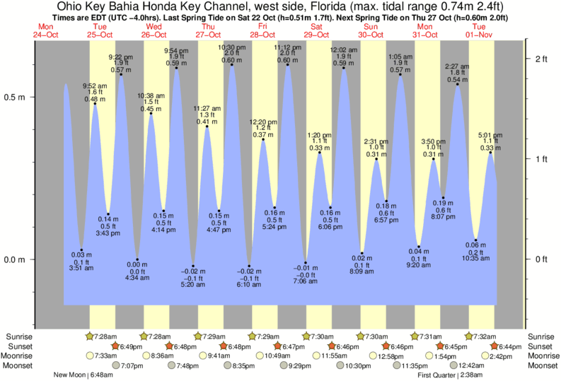 Tide chart for Ohio Key Bahia Honda Key Channel, west sideShowing low and high tide times for the next 30 days at Ohio Key Bahia Honda Key Channel, west side. Tide Times are EST (UTC -5.0hrs).
