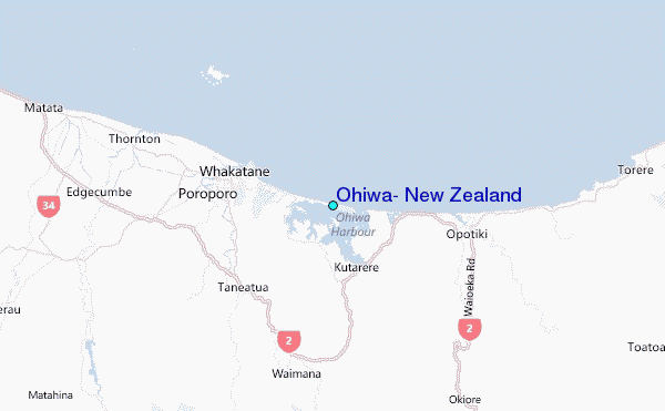 Use this relief map to navigate to tide stations, surf breaks and cities that are in the area of Ohiwa, New Zealand.