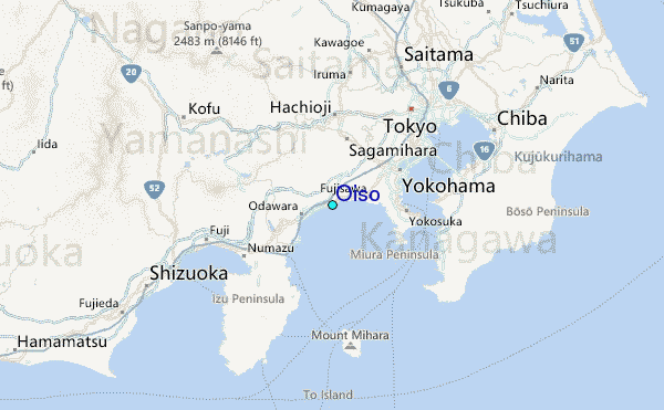 Use this relief map to navigate to tide stations, surf breaks and cities that are in the area of Oiso.
