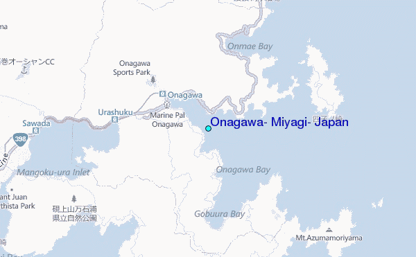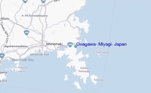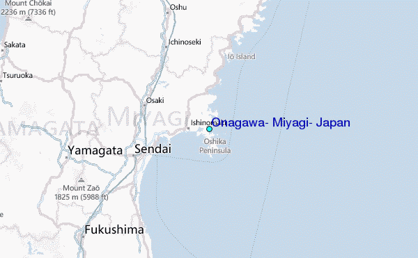 Use this relief map to navigate to tide stations, surf breaks and cities that are in the area of Onagawa, Miyagi, Japan.