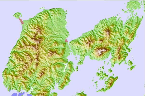 Use this relief map to navigate to tide stations, surf breaks and cities that are in the area of Oomon, Kumamoto, Japan.