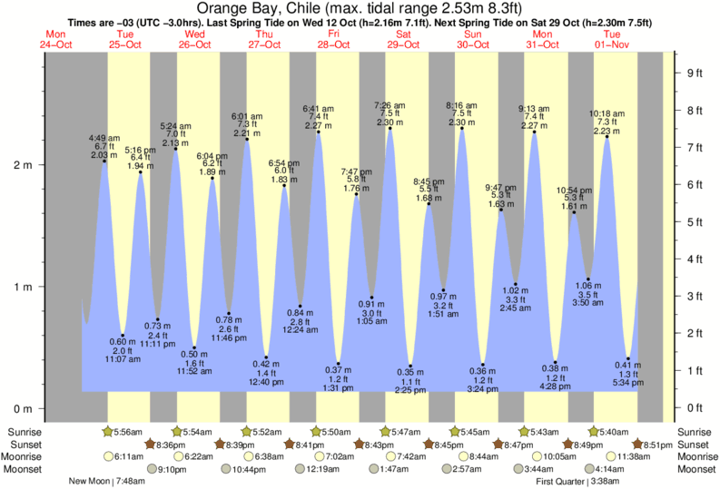 NOTE: Use of this site for Orange Bay, Chile tide times is subject to our terms.