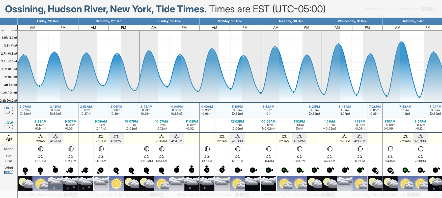 Tide Times for Ossining, Hudson River (tomorrow): Friday 26 December 2025