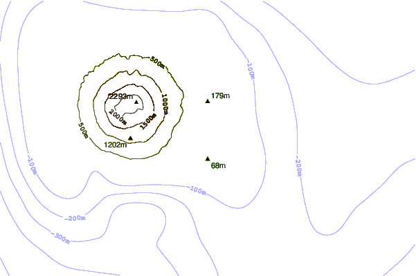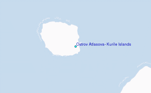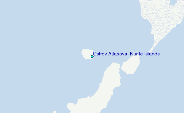 Use this relief map to navigate to tide stations, surf breaks and cities that are in the area of Ostrov Atlasova, Kurile Islands.