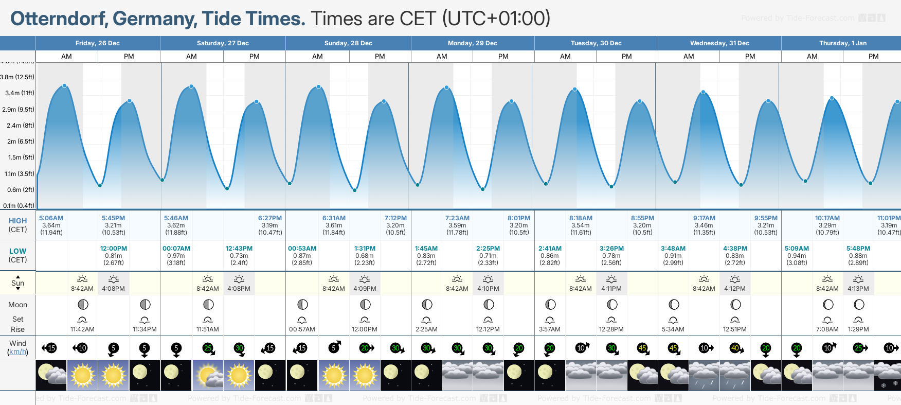 December and January Tide charts for Otterndorf: The tide charts below show the height, time and date of high and low tides for the next 30 days.
