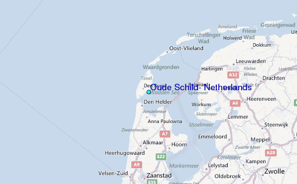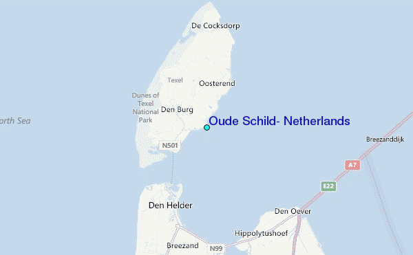 Use this relief map to navigate to tide stations, surf breaks and cities that are in the area of Oude Schild, Netherlands.