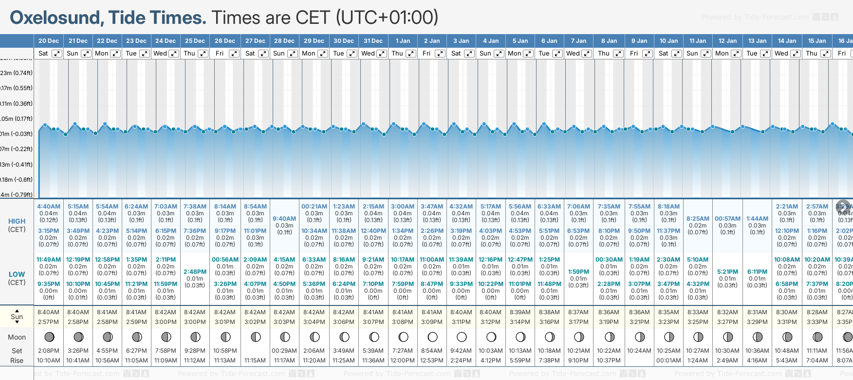 Tide Times for Oxelosund (tomorrow): Saturday 20 December 2025