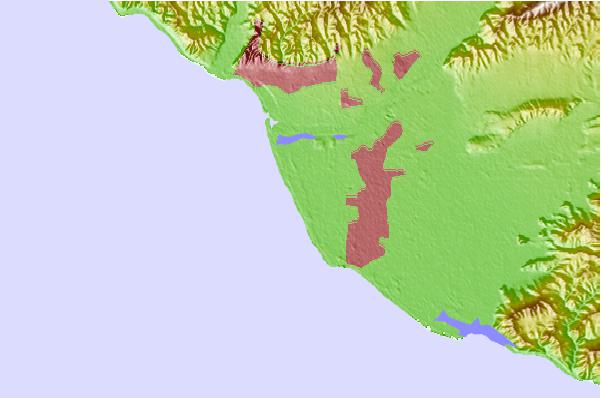 Use this relief map to navigate to tide stations, surf breaks and cities that are in the area of Oxnard Shores.