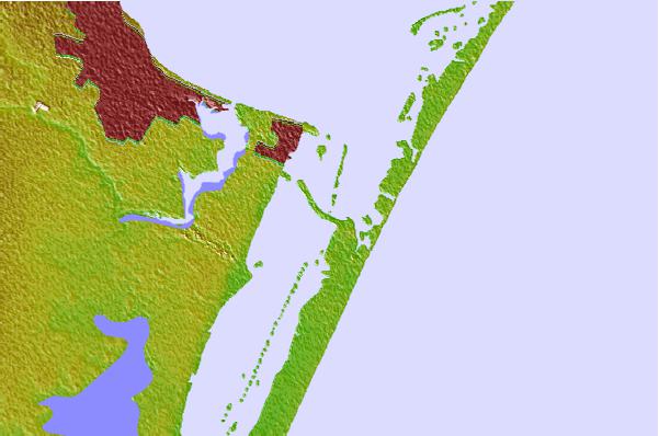 Use this relief map to navigate to tide stations, surf breaks and cities that are in the area of Packery Channel, Texas.