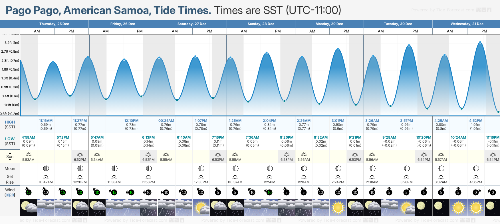 NOTE: Use of this site for Pago Pago, American Samoa tide times is subject to our terms.