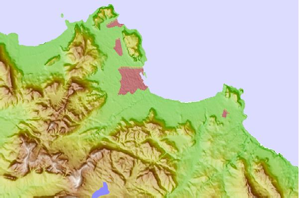Use this relief map to navigate to tide stations, surf breaks and cities that are in the area of Palermo.
