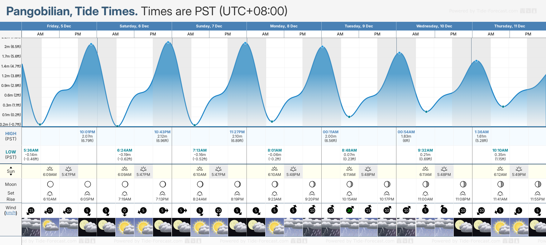 Pangobilian Tide Chart including high and low tide times for the next 7 days