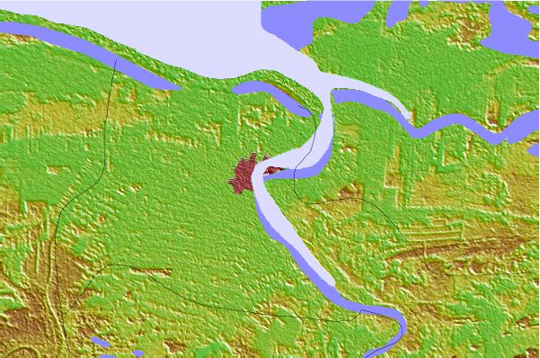 Use this relief map to navigate to tide stations, surf breaks and cities that are in the area of Paramaribo, Suriname.