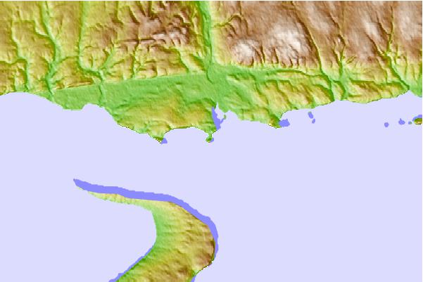 Use this relief map to navigate to tide stations, surf breaks and cities that are in the area of Parrsboro, Nova Scotia.