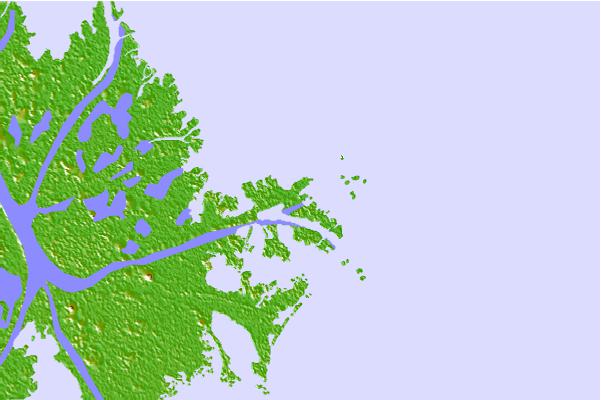 Use this relief map to navigate to tide stations, surf breaks and cities that are in the area of Pass a Loutre entrance, Mississippi River Delta, Louisiana.
