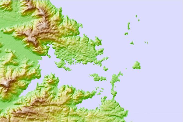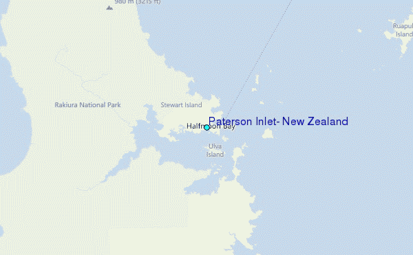 Use this relief map to navigate to tide stations, surf breaks and cities that are in the area of Paterson Inlet, New Zealand.