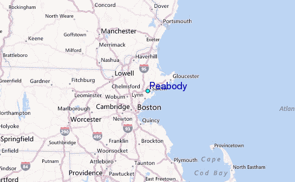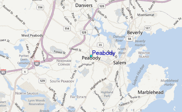 Use this relief map to navigate to tide stations, surf breaks and cities that are in the area of Peabody.