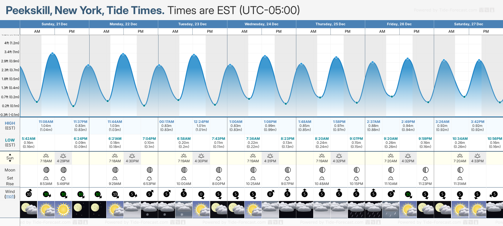 Tide Times for Peekskill (tomorrow): Sunday 21 December 2025