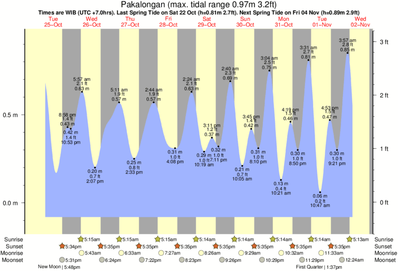 Tide Times are WIB (UTC +7.0hrs). Last Spring High Tide at Pakalongan was on Fri 12 Dec (height: 0.86m 2.8ft). Next high Spring Tide at Pakalongan will be on Sat 27 Dec (height: 0.80m 2.6ft).