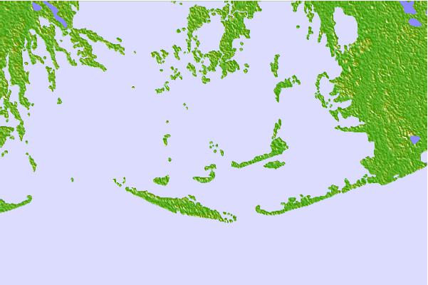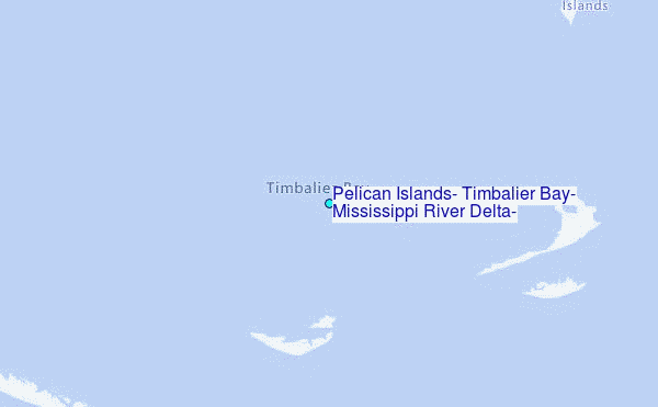 Use this relief map to navigate to tide stations, surf breaks and cities that are in the area of Pelican Islands, Timbalier Bay, Mississippi River Delta, Louisiana.