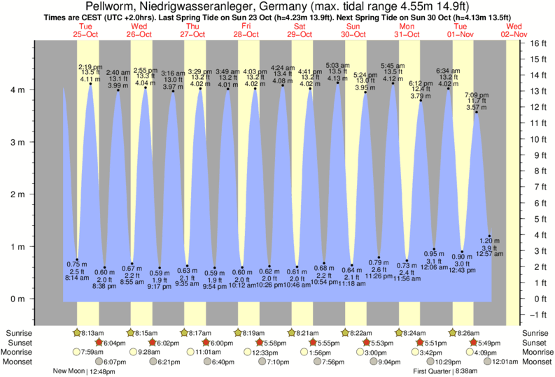 December and January Tide charts for Pellworm, Niedrigwasseranleger: The tide charts below show the height, time and date of high and low tides for the next 30 days.