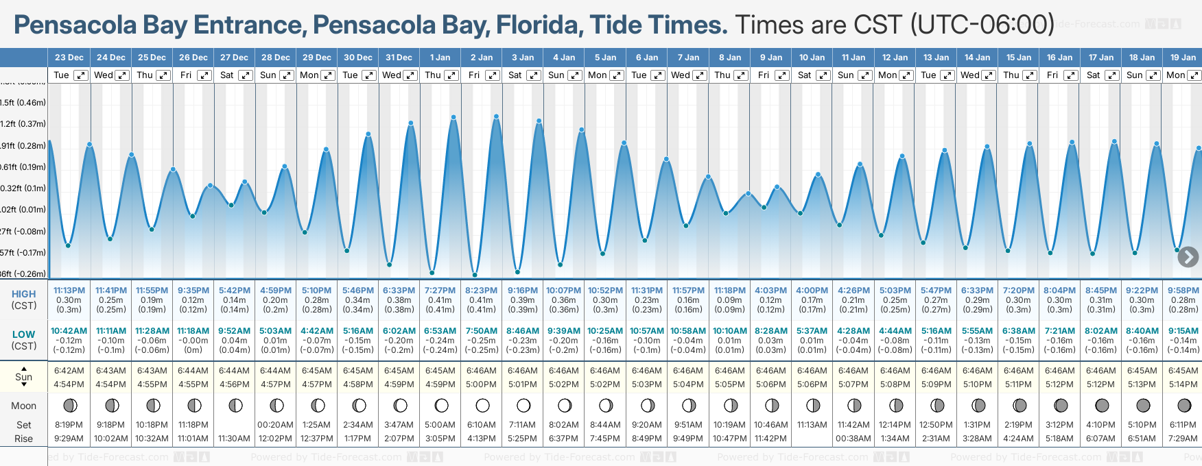 Tide Times for Pensacola Bay Entrance, Pensacola Bay (tomorrow): Wednesday 24 December 2025