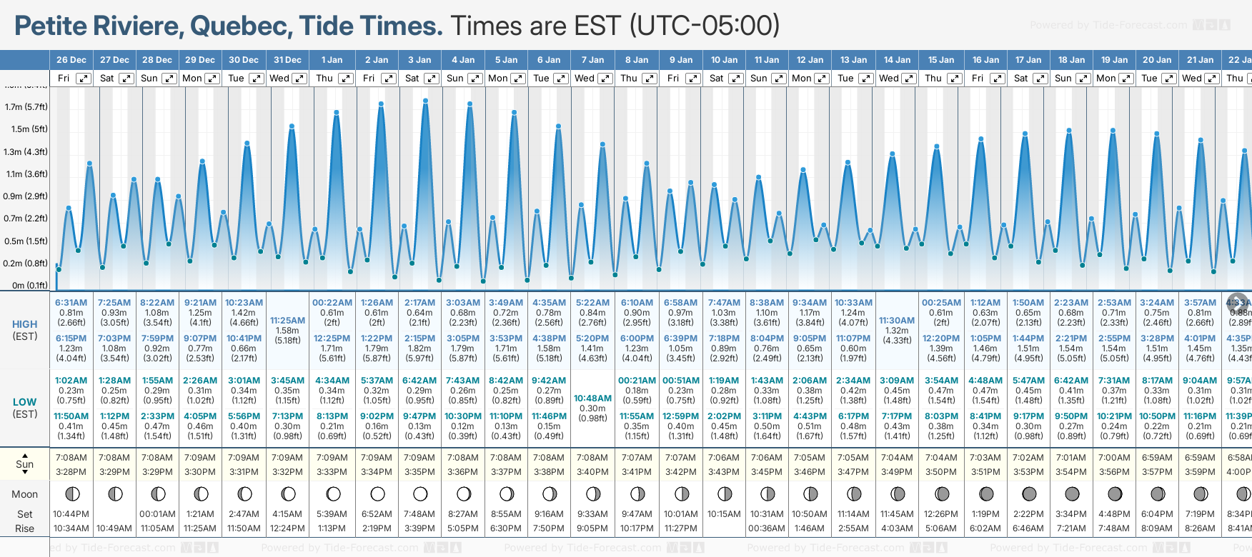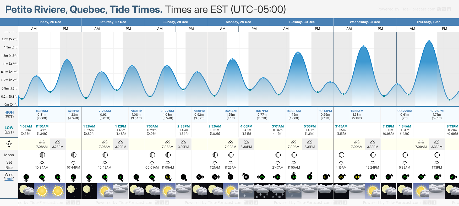 NOTE: Use of this site for Petite Riviere, Quebec tide times is subject to our terms.