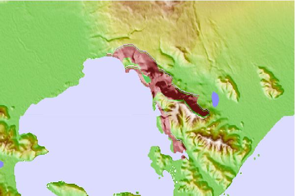 Use this relief map to navigate to tide stations, surf breaks and cities that are in the area of Petropavlosk, Russia.