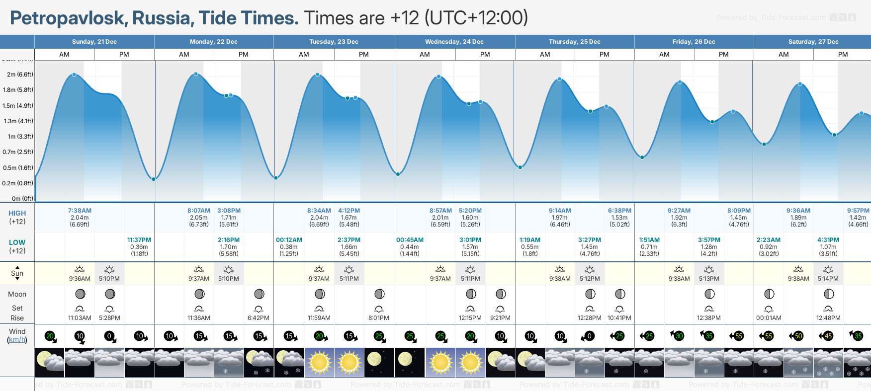 Tide Times for Petropavlosk (tomorrow): Monday 22 December 2025