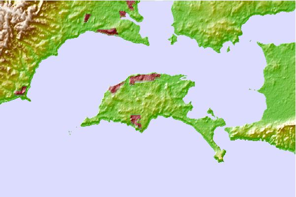 Use this relief map to navigate to tide stations, surf breaks and cities that are in the area of Phillip Island.