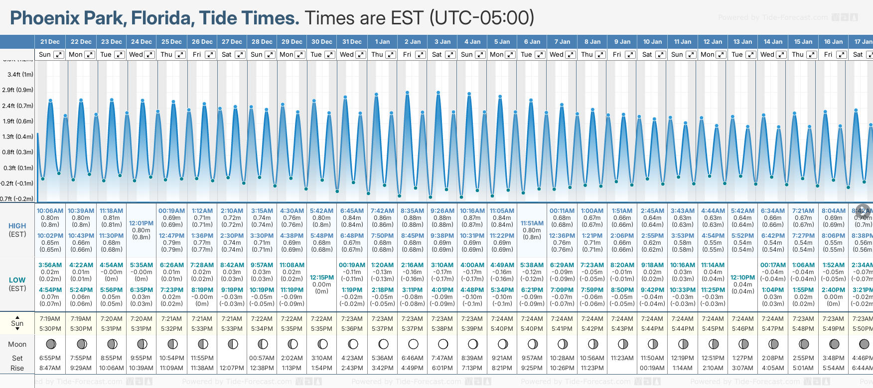 NOTE: Use of this site for Phoenix Park, Florida tide times is subject to our terms.